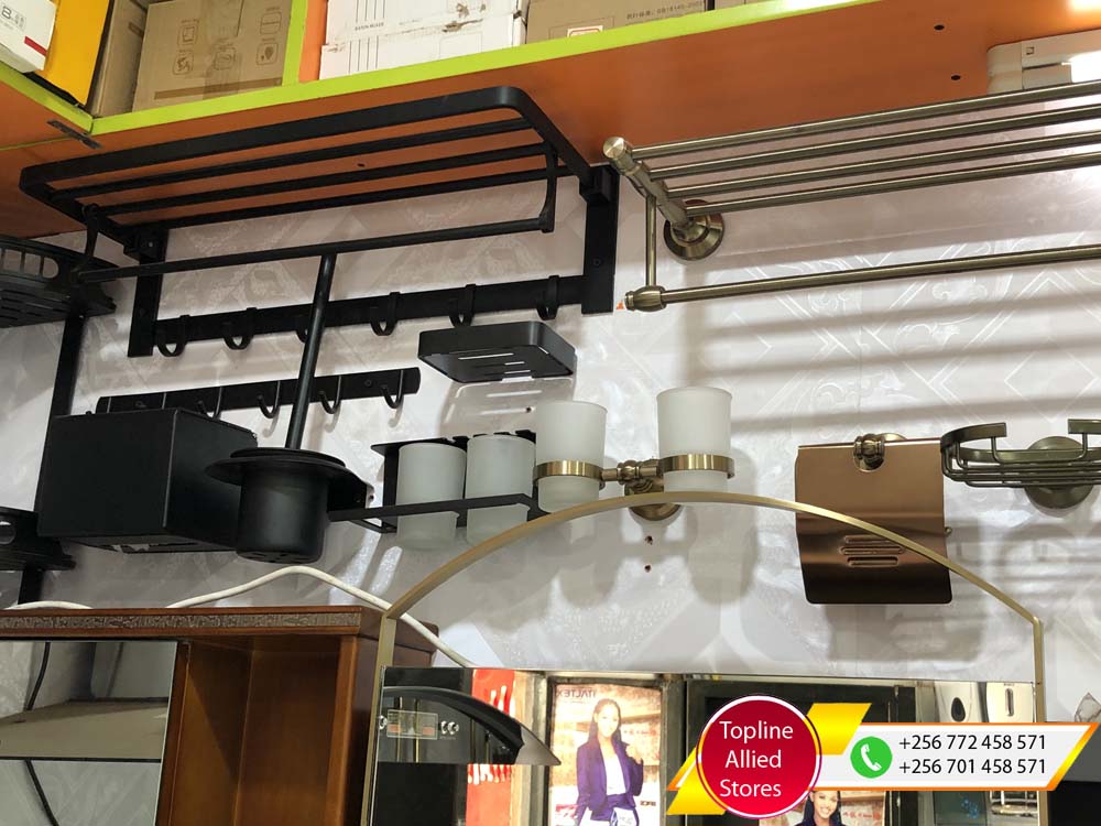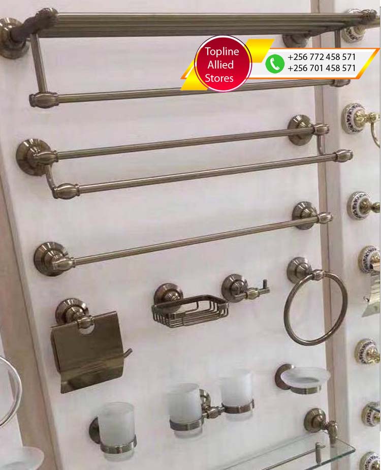 Towel Racks for sale in Uganda, Modern Toilet And Bathroom Fittings and Accessories in Uganda, Topline Allied Stores Uganda Services: Toilets, Kitchen Sinks, Wash Basins, Sanitary Ware And Fittings. We stock the following products: Tiles, Bathtubs, Mirrors, Toilet Seats, Button Flush Toilets, Urinals, Wash Basins, Kitchen Taps, Kitchen Sinks, Shower Systems, Bidets and lots more Sanitary products. Our Hardware Shop is located in Nakasero below Nakasero Market, Kampala Uganda, Ugabox