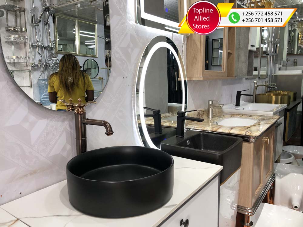 Vanity Cabinet for sale in Uganda, Modern Toilet And Bathroom Fittings and Accessories in Uganda, Topline Allied Stores Uganda Services: Toilets, Kitchen Sinks, Wash Basins, Sanitary Ware And Fittings. We stock the following products: Tiles, Bathtubs, Mirrors, Toilet Seats, Button Flush Toilets, Urinals, Wash Basins, Kitchen Taps, Kitchen Sinks, Shower Systems, Bidets and lots more Sanitary products. Our Hardware Shop is located in Nakasero below Nakasero Market, Kampala Uganda, Ugabox